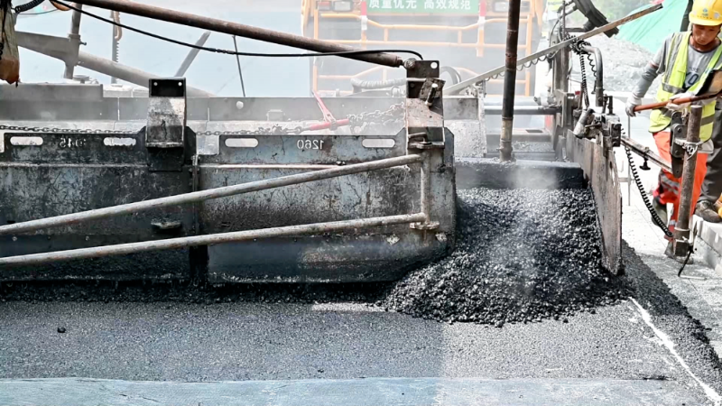 在金字牌互通至大榨尖隧道進(jìn)口段瀝青中面層施工現(xiàn)場,運料車與攤鋪機(jī)協(xié)同作業(yè),雙鋼輪壓路機(jī)、膠輪壓路機(jī)、小型壓路機(jī)聯(lián)合碾壓,呈現(xiàn)出有序高效的施工景象。為確保工程質(zhì)量和進(jìn)度,施工單位安徽交控工程集團(tuán)科學(xué)組織施工,規(guī)范執(zhí)行碾壓工藝,嚴(yán)格管控配合比、攤鋪厚度、壓實度等關(guān)鍵施工環(huán)節(jié)。